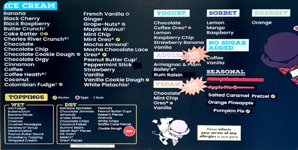 We also offer No-Sugar Added ice creams, Yogurts, Vegans, and Sorbet flavors!