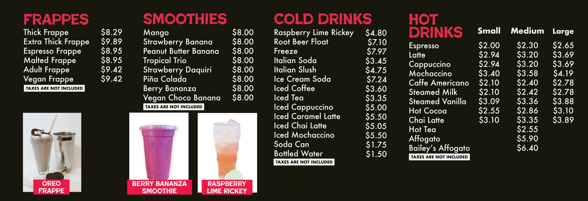 Full Espresso Bar, Coffee, Teas, Delicious pastries, Frozen Yogurt and Vegan Ice Cream options